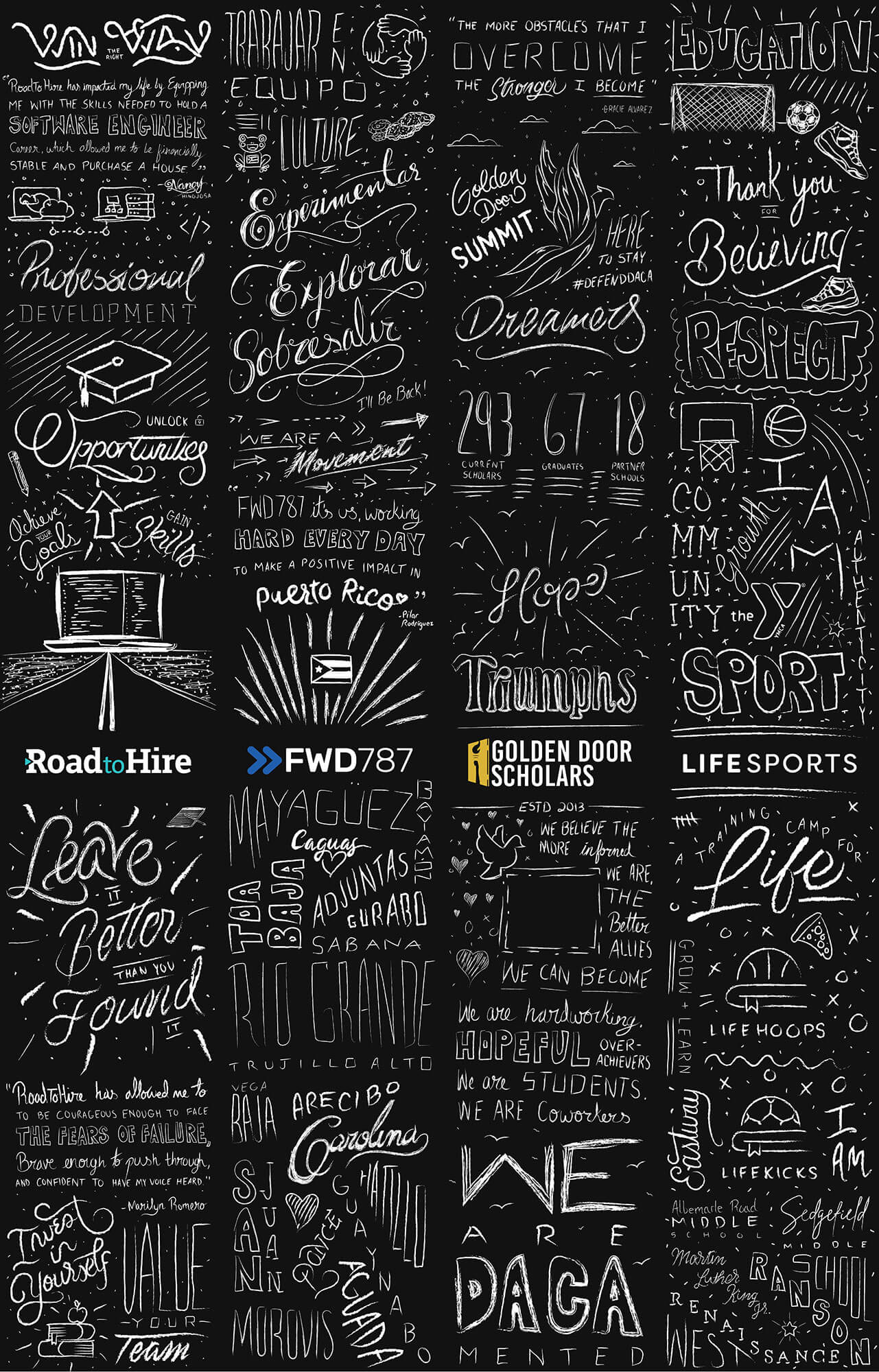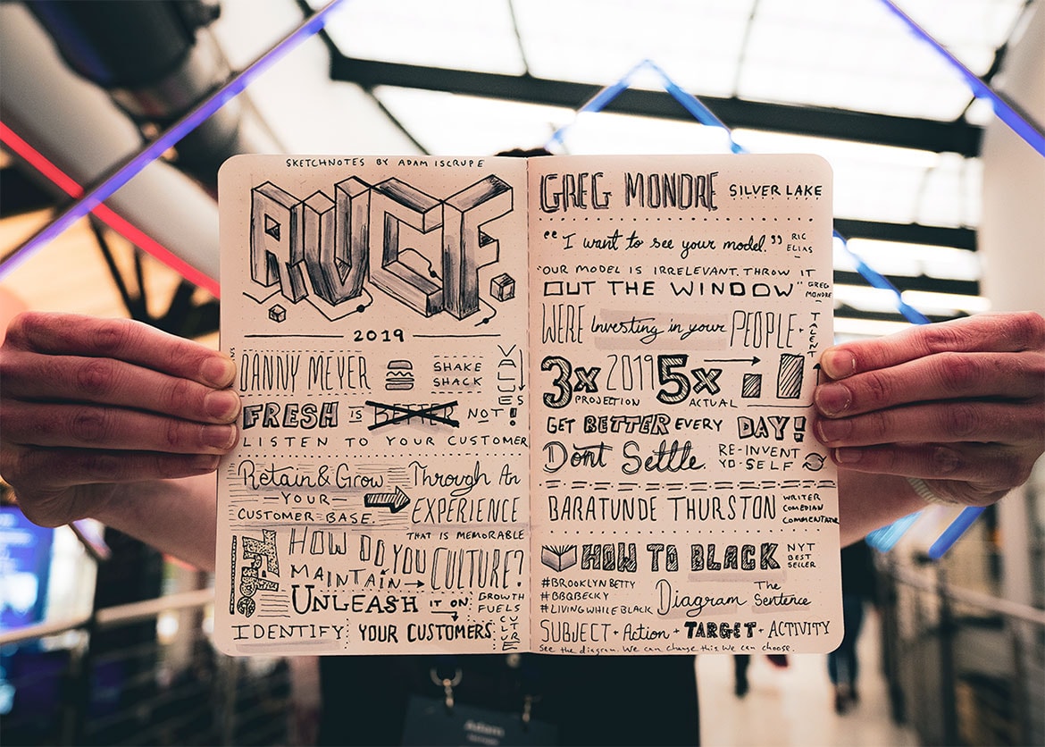 Drawing is where my creativity started and it’s still my favorite way to think. I use illustration to bridge ideas and emotion. Whether it’s through sketchnotes, icon design, t-shirt swag, or 80-foot murals. My process is hands-on, sketch first and always refine later.
